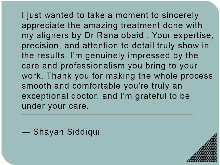 Dr. Rana Obaid strongly believes in combining professional expertise with compassion. Every patient who walks into his clinic is treated with respect, empathy, and individualized attention. His goal is not only to treat but also to educate patients so they feel confident about their oral health decisions.